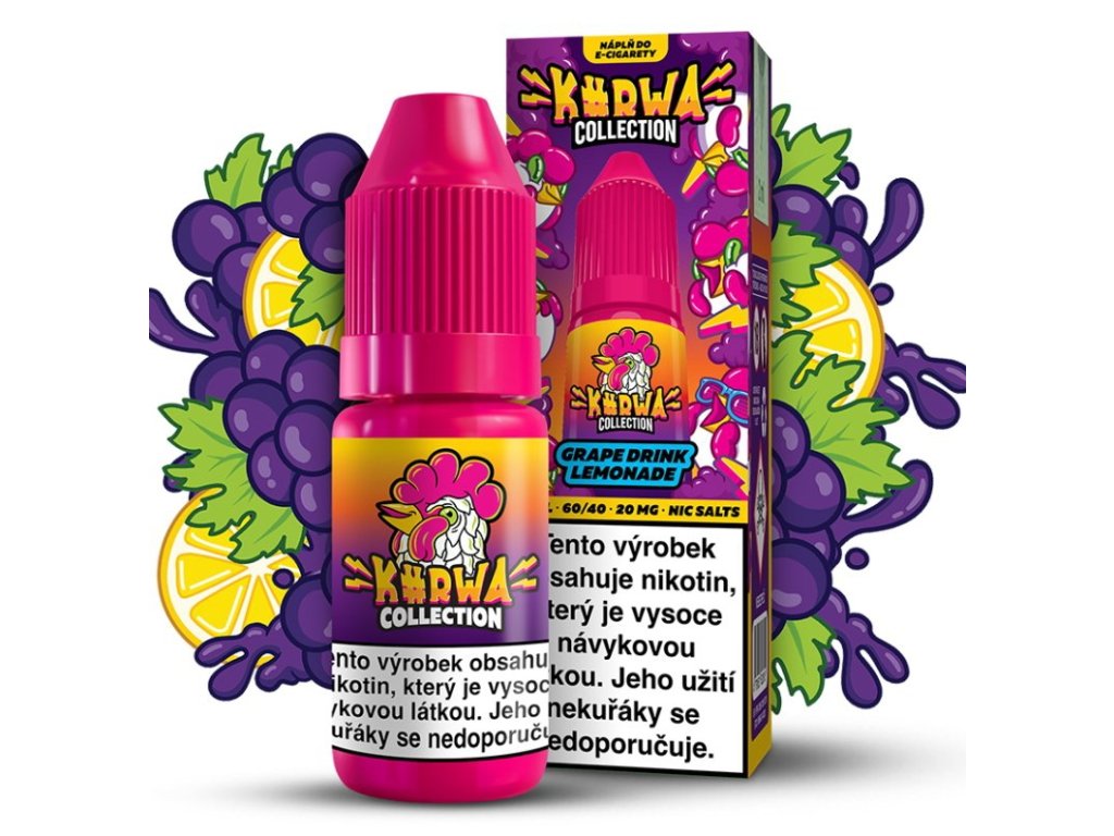 KURWA COLLECTION E-LIQUID GRAPE DRINK LEMONADE – osvěžující spojení hroznové limonády a citronového nádechu s 20 mg nikotinové soli v 10ml balení.