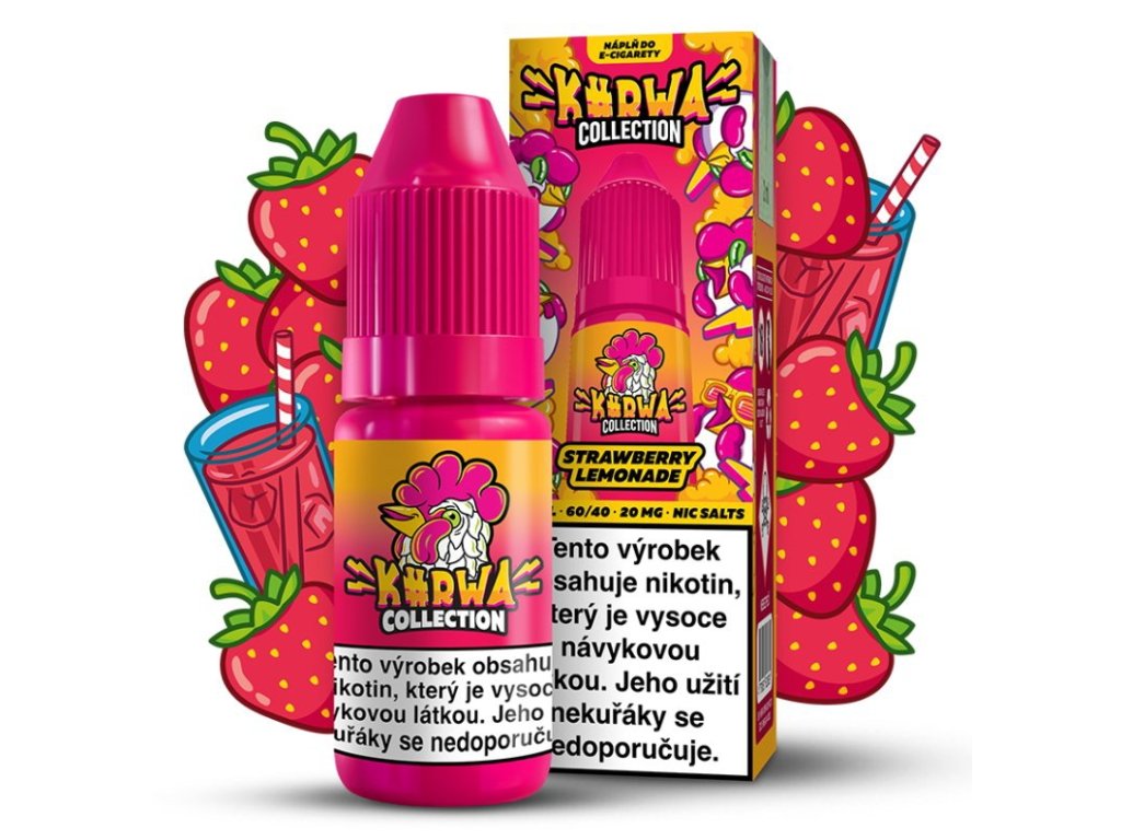 KURWA COLLECTION E-LIQUID STRAWBERRY LEMONADE – svěží kombinace sladkých jahod a osvěžující limonády v 10ml balení s 20 mg nikotinové soli.