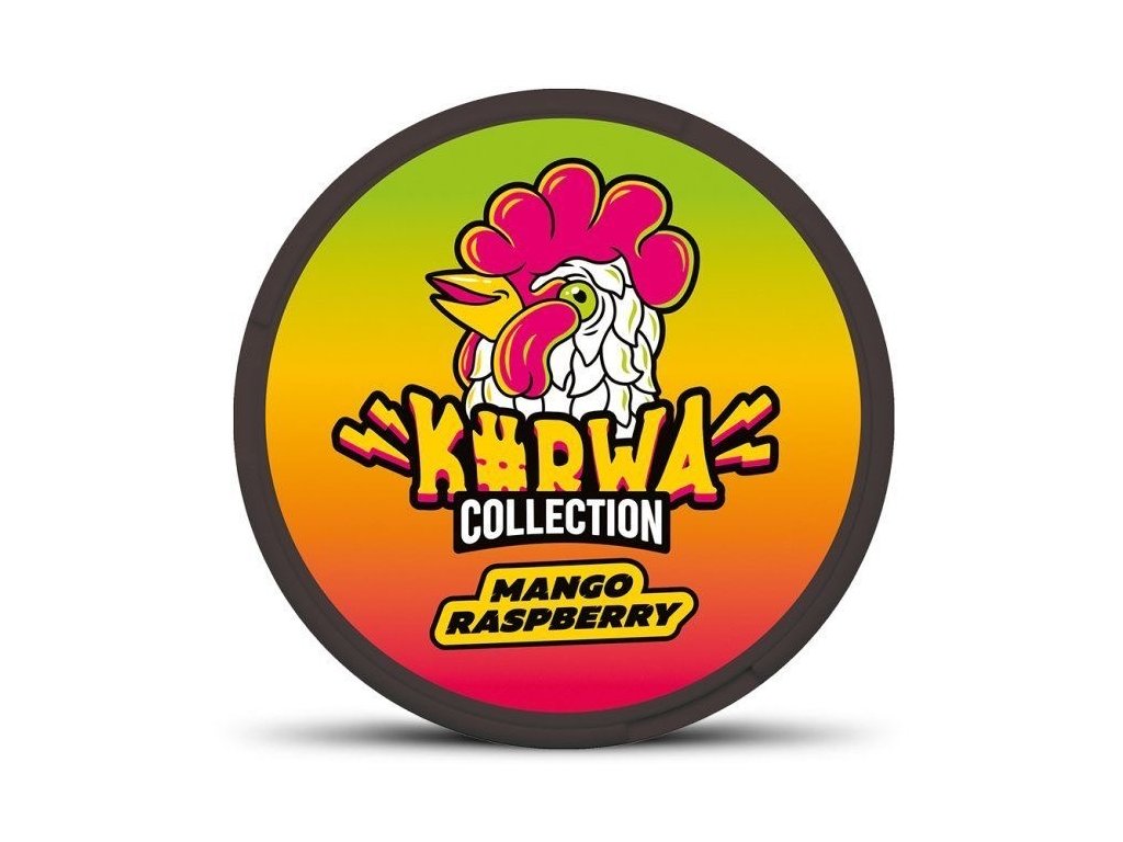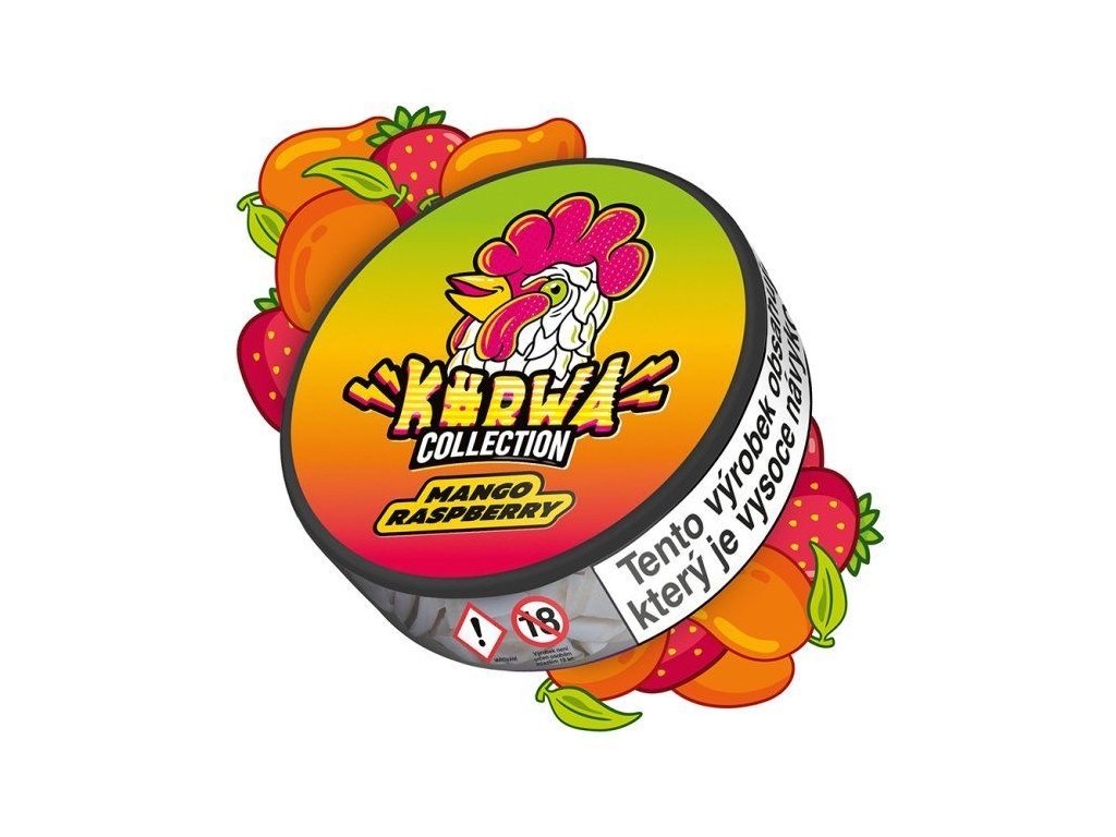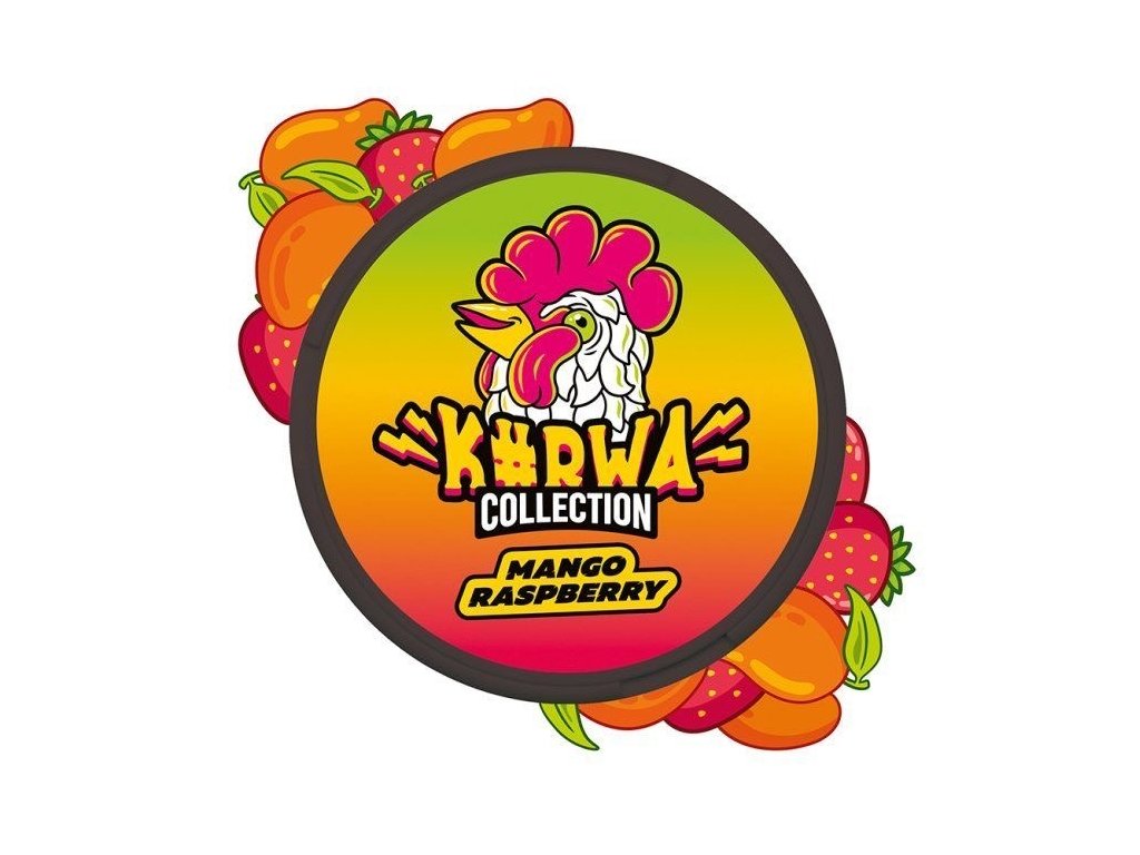 Nikotinové sáčky KURWA Collection Mango Raspberry – sladké mango a svěží malina v slim formátu. 25 mg/g nikotinu (cca 16 mg/sáček), ideální pro zkušené uživatele.