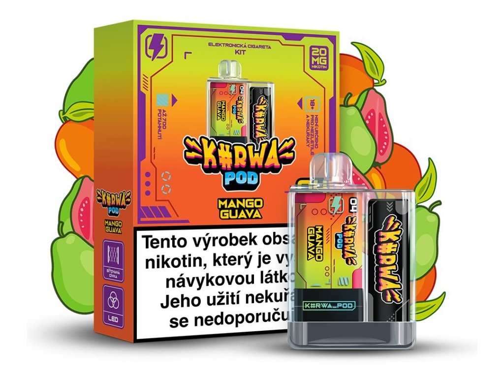 KURWA POD KIT MANGO GUAVA 20 MG přináší exotickou kombinaci sladkého manga a aromatické guavy. Tropická chuť, která vás přenese do slunných destinací.