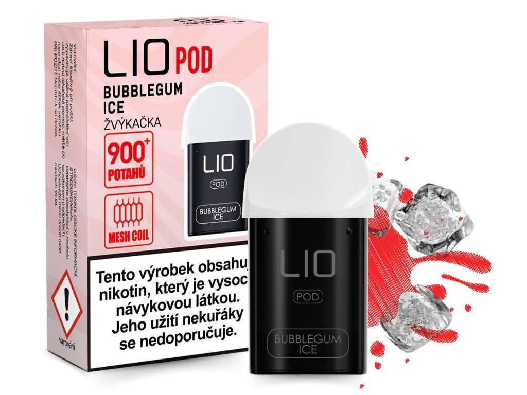 LIO POD Bubblegum Ice 1x2 ml – 16 mg – Sladká chuť žvýkačky s osvěžujícím mentolovým závěrem a 16 mg nikotinové soli v každém PODu o objemu 2 ml.