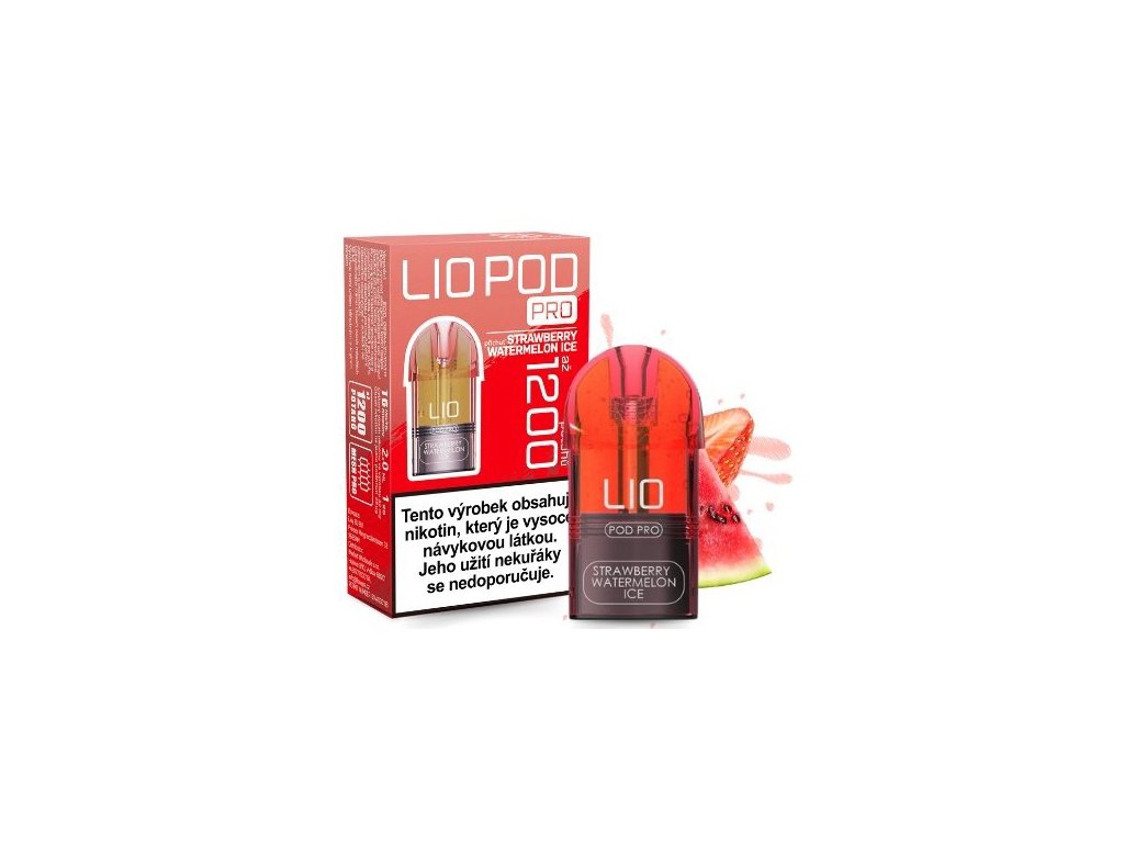 LIO POD PRO Strawberry Watermelon Ice 1×2 ml – 16 mg – Osvěžující kombinace sladké jahody a šťavnatého vodního melounu doplněná chladivým ledovým efektem, s obsahem 16 mg nikotinové soli v každém PODu o objemu 2 ml.