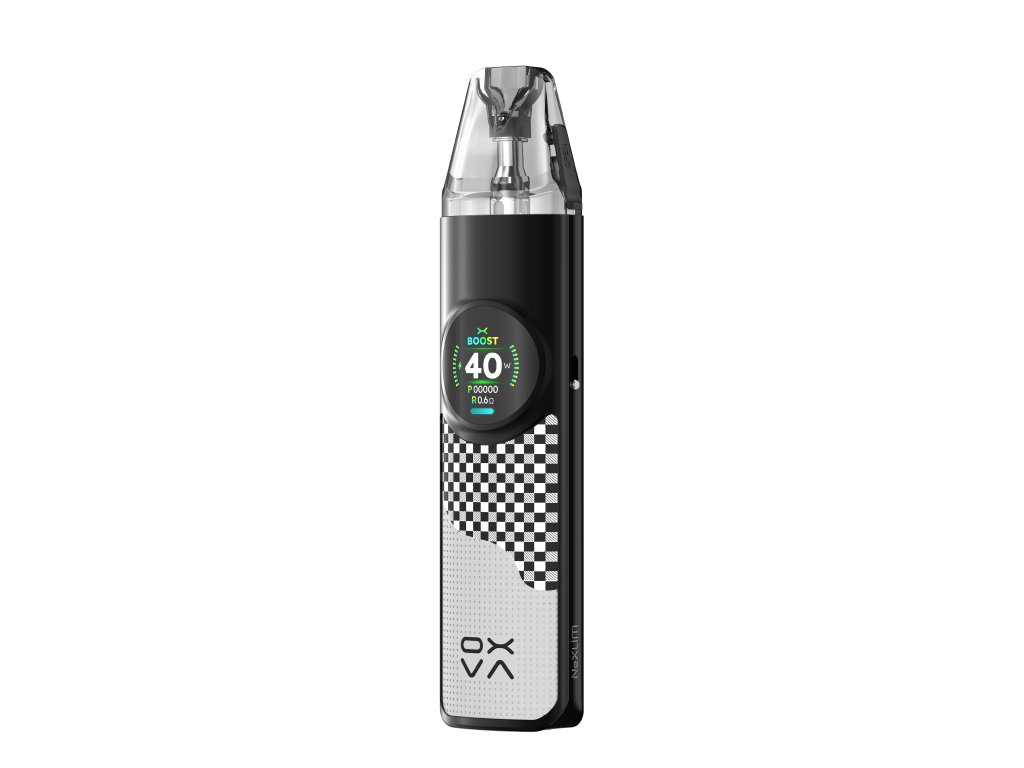 OXVA NeXLIM - Chequered Gray - elegantní provedení kombinuje moderní šedý odstín s decentním šachovnicovým vzorem, který dodává zařízení prémiový technický vzhled. Matný povrch zajišťuje příjemný úchop a minimalizuje viditelnost otisků prstů. Stylová volba pro ty, kteří preferují minimalistický design s nádechem originality.