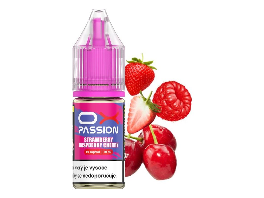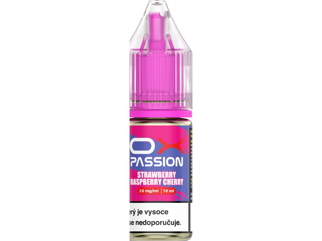 OXVA OX Passion Salt Strawberry Raspberry Cherry 10 ml 20 mg přináší sladko-ovocnou kombinaci jahody, maliny a třešně s plným chuťovým profilem a hladkým nikotinovým projevem.