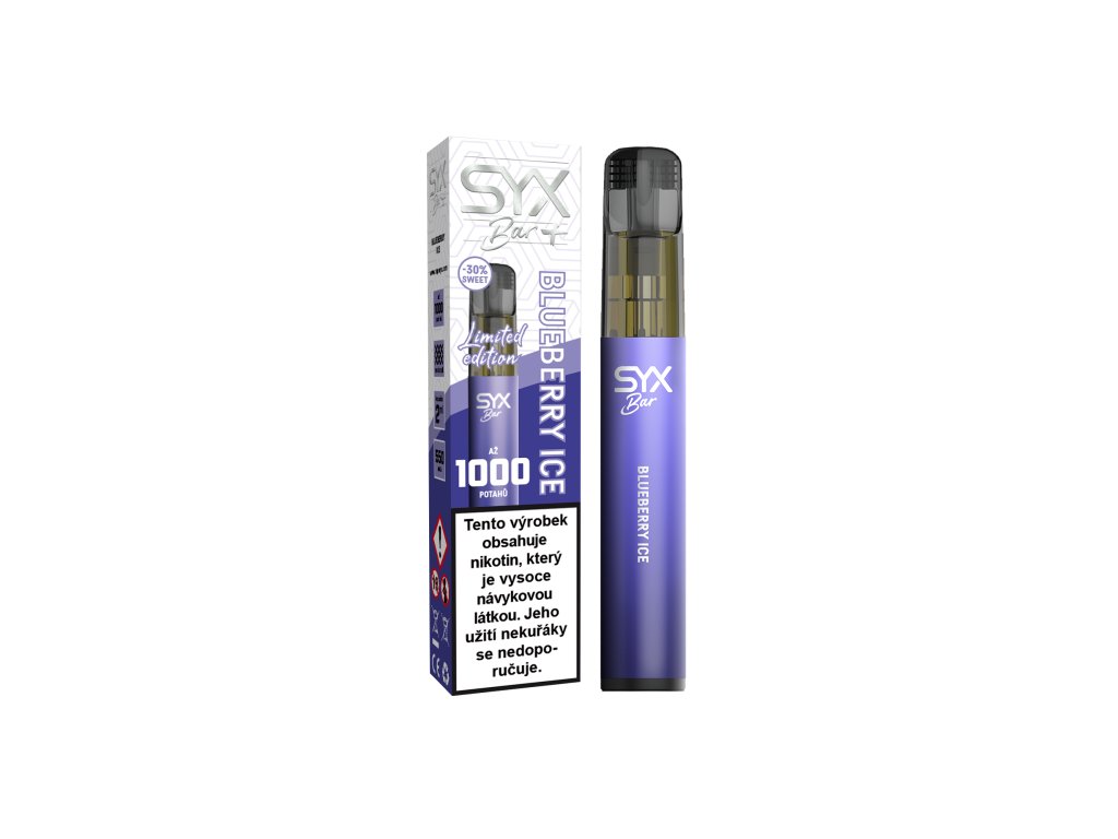 SYX BAR LTD Blueberry Ice – osvěžující borůvka s 30% méně sladkosti. 1000 potahů, 16,5 mg nikotinová sůl, čistá chuť a příjemná svěžest.