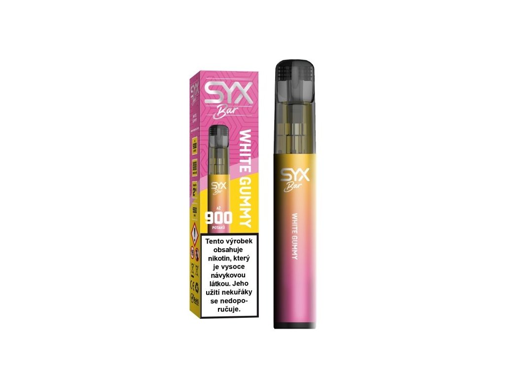 SYX BAR White Gummy 16,5 mg – Sladká a ovocná chuť inspirovaná legendárními bílými želé bonbony. Hladký potah a silný nikotinový hit pro maximální vapingový požitek.