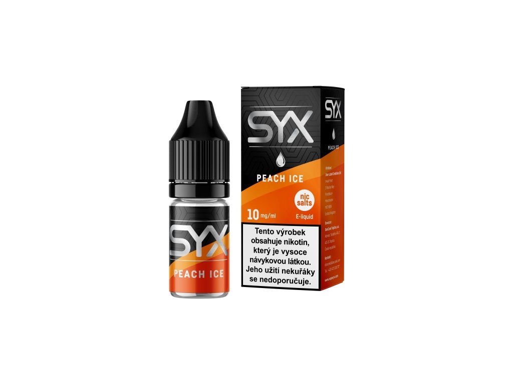 SYX NS - Peach Ice 10 mg přináší šťavnatou chuť sladkých broskví s osvěžujícím ledovým efektem pro dokonale vyvážený a osvěžující vapingový zážitek.