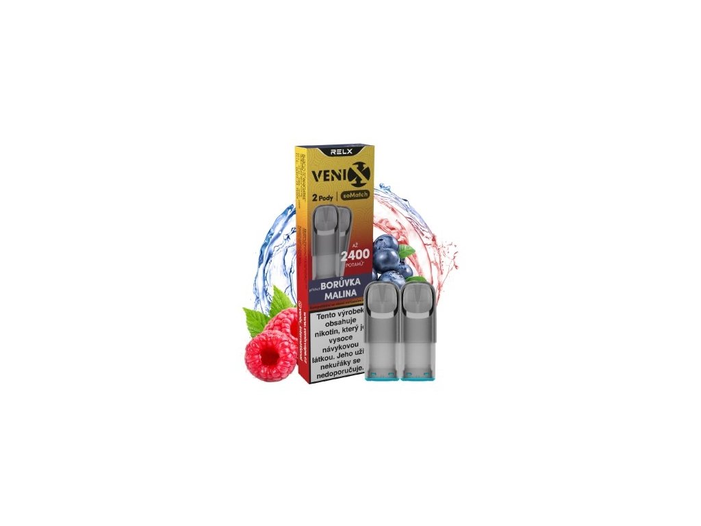 Venix RELX soMatch POD Blueberry Raspberry – Dokonalá kombinace sladkých borůvek a osvěžujících malin. Intenzivní ovocná chuť pro hladký a příjemný vapingový zážitek.