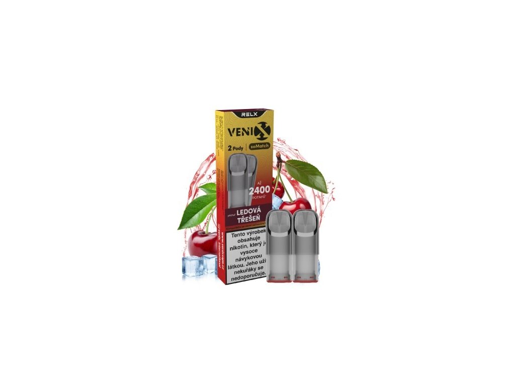 Venix RELX soMatch POD Cherry Ice – Sladké a šťavnaté třešně s osvěžujícím ledovým efektem. Perfektní rovnováha mezi ovocnou chutí a chladivým zakončením.