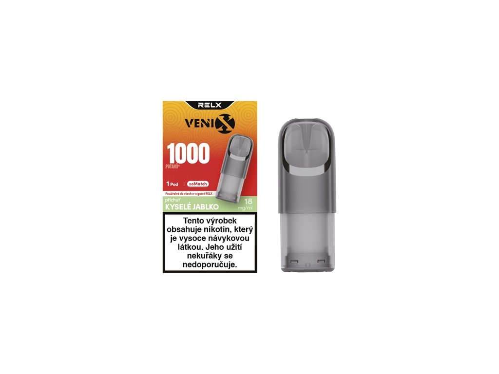 Venix RELX soMatch POD Sour Apple – Osvěžující kyselé jablko s výraznou ovocnou chutí. Skvělá volba pro milovníky svěžích a intenzivních příchutí.