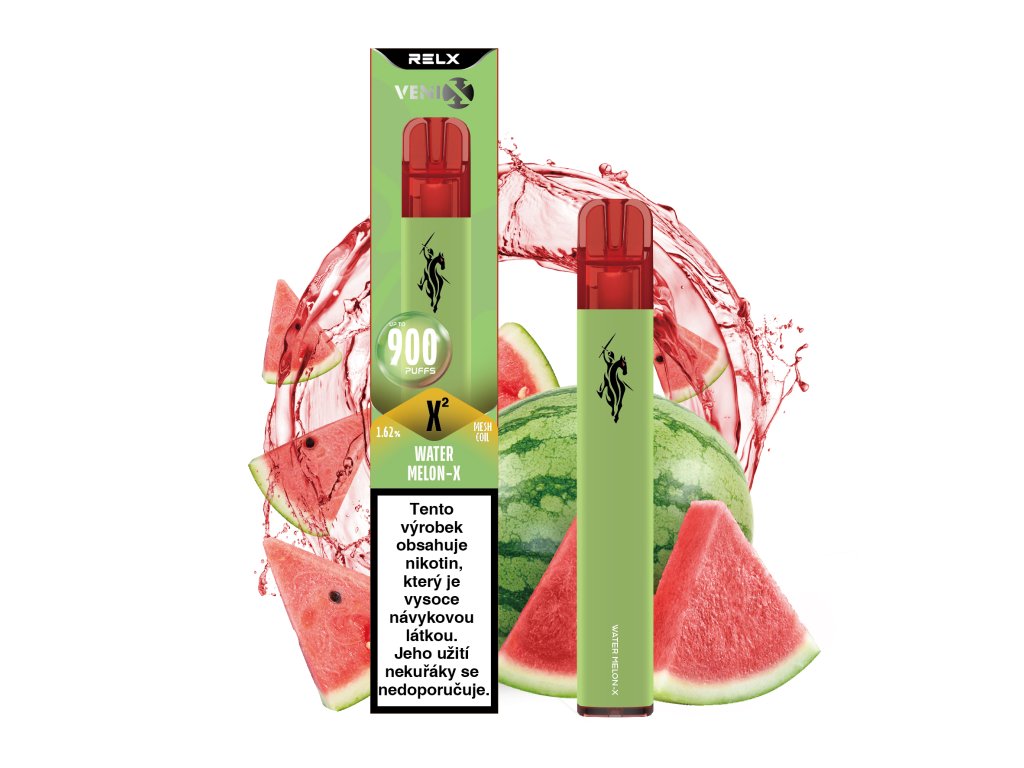 Venix X2 Watermelon‑X – jednorázová e‑cigareta s osvěžující chutí sladkého vodního melounu, až 900 potahů, 400 mAh baterie a MESH Coil 2.0 technologie pro stabilní a výrazný chuťový zážitek